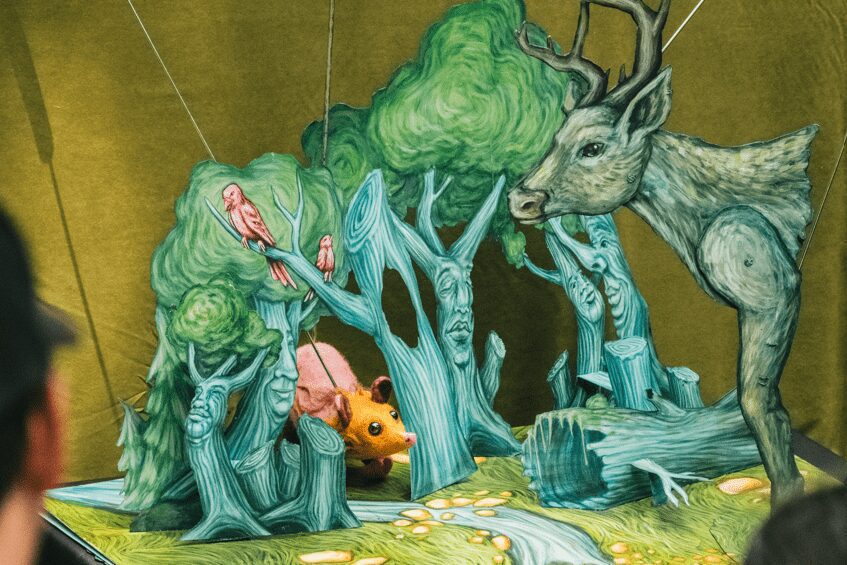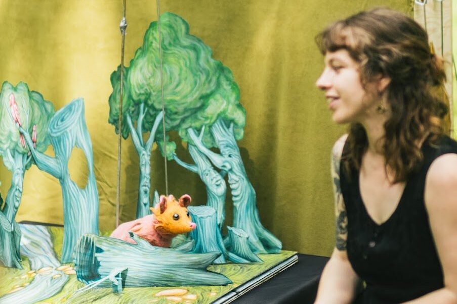 Plonger dans un conte à travers un livre pop-up géant habité par des marionnettes! Cette adaptation de L’Arrivée des Opossums, de Keenan Poloncsak, vous transporte dans un univers visuel riche et inspiré du réalisme magique.