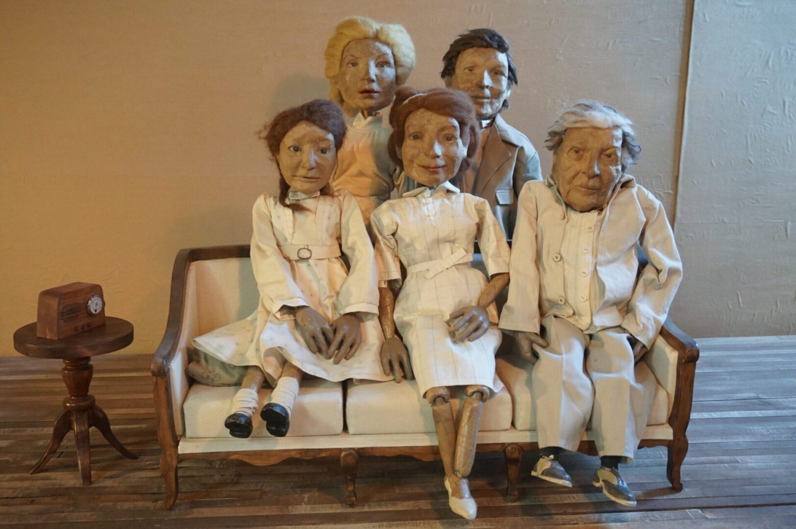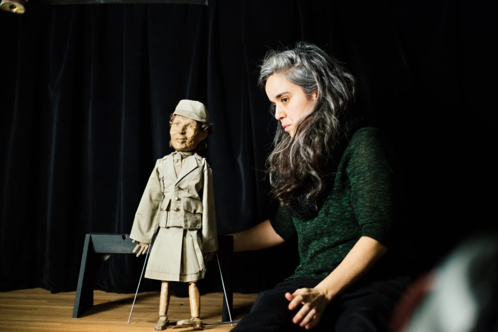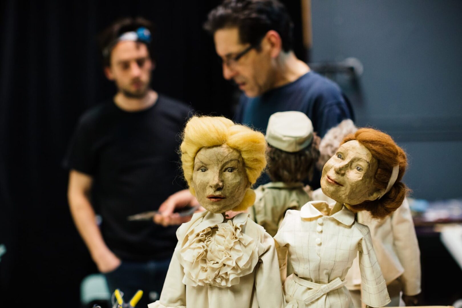 Marionnettes:  Michel 84 ans, Michel 1955-1965, Michel 1940, La croqueuse d’homme et  l’amie.