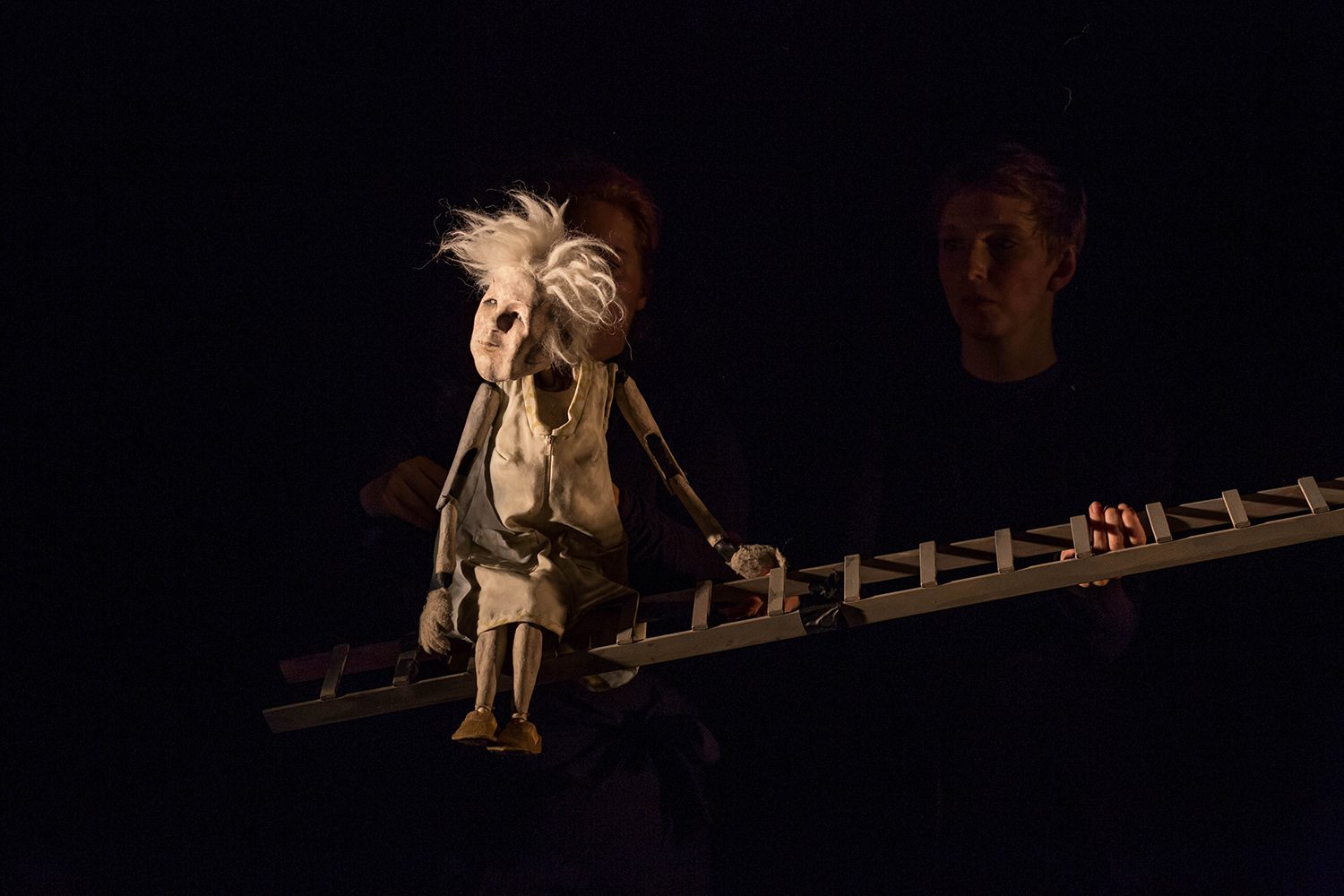 Marionnettes à tige dans le dos mais qui demeurent à mains prenantes pour la manipulation des mains et des pieds.