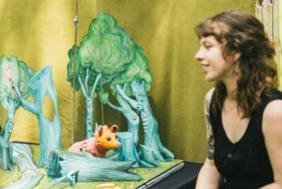 Artiste interdisciplinaire issue des arts visuels, Mélina Kerhoas développe une pratique où se rencontrent théâtre d’ombres, marionnette et art social. Diplômée en sociologie (2015) et en Théâtre de marionnettes contemporain (UQAM, 2021), elle conçoit, sculpte et manipule des marionnettes de toutes échelles.