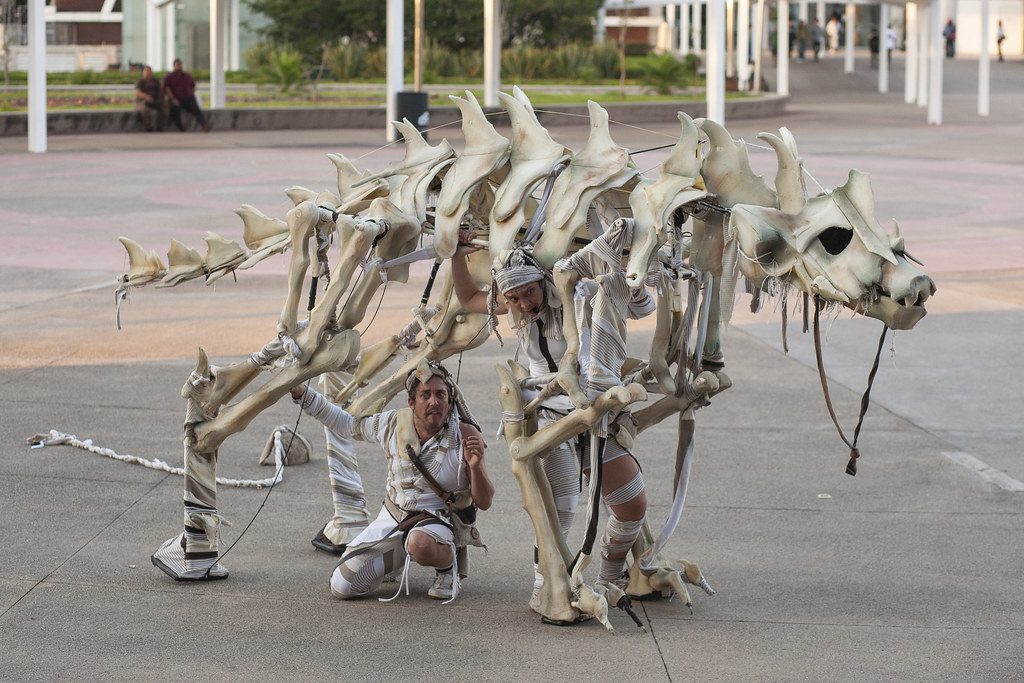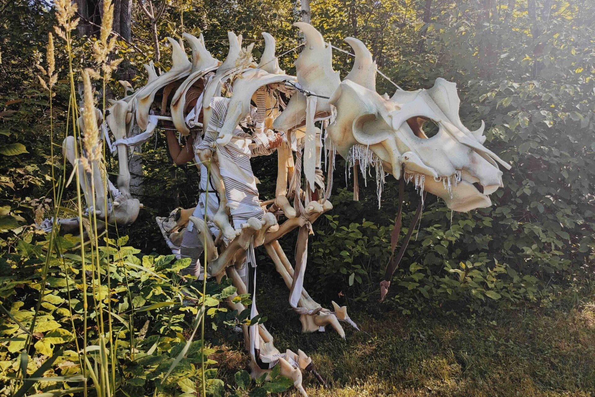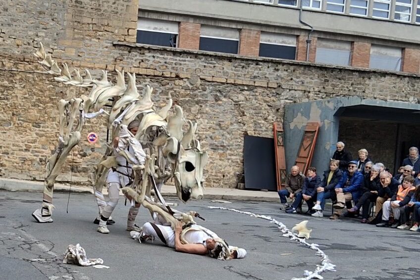 C’est une marionnette géante, ingénieusement conçue pour être autoportante. D’une grande agilité, elle peut être manipulée par deux personnes, voire une seule à certains moments. Entièrement démontable, elle est conçue pour faciliter la tournée.
