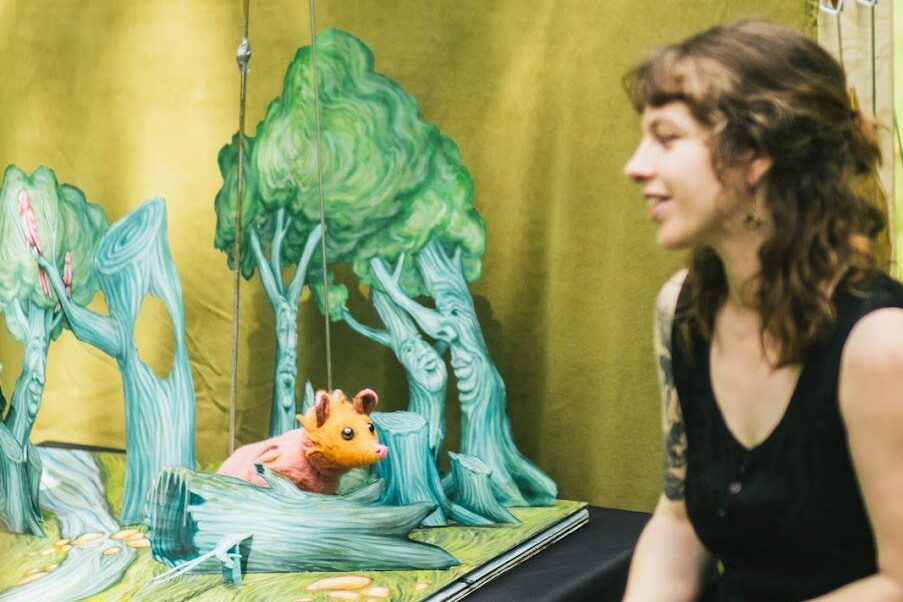 Plonger dans un conte à travers un livre pop-up géant habité par des marionnettes! Cette adaptation de L’Arrivée des Opossums, de Keenan Poloncsak, vous transporte dans un univers visuel riche et inspiré du réalisme magique.