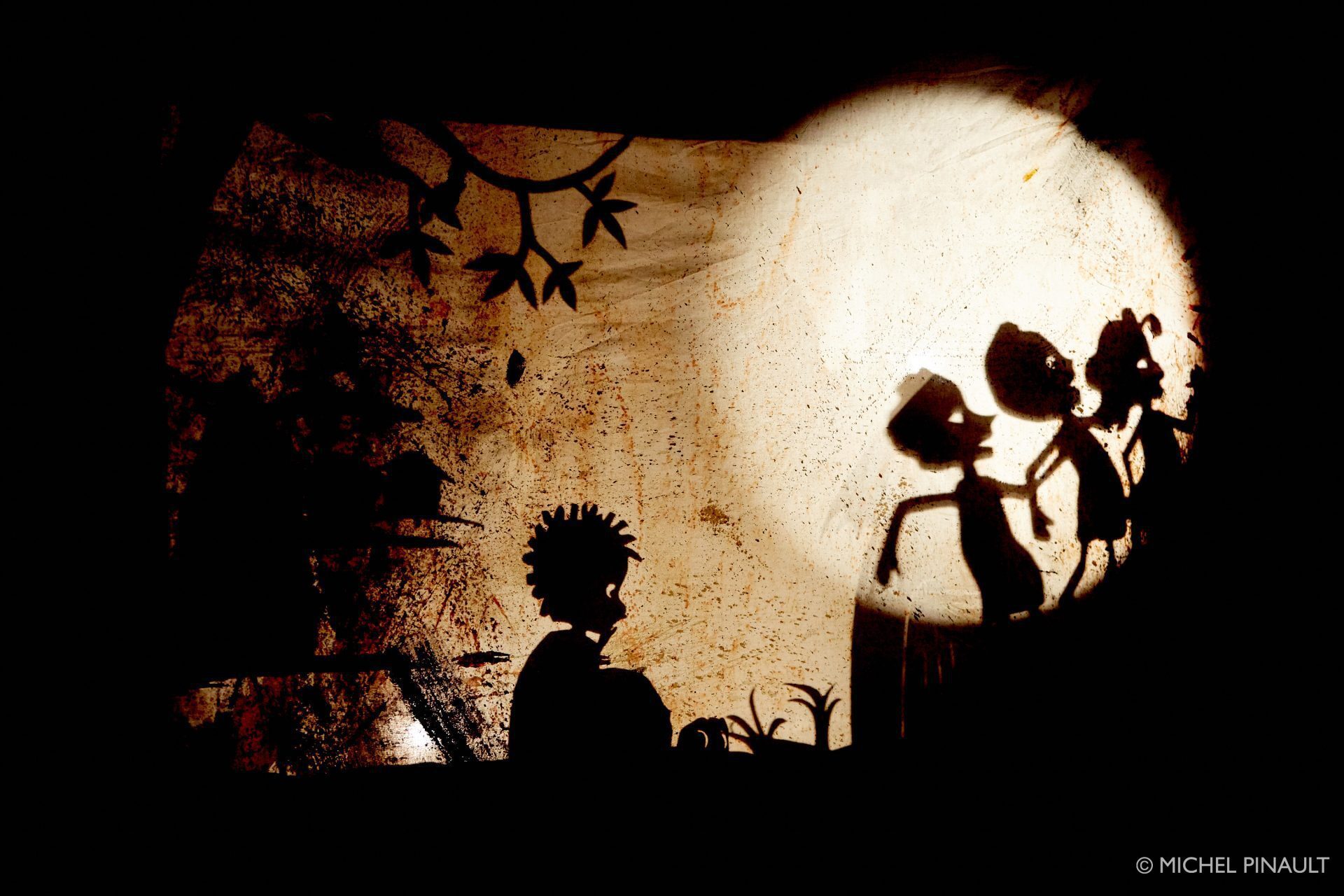 Inspirée d’un conte populaire africain, cette histoire raconte les difficultés d’un petit village africain prisonnier d’un monstre-voleur provenant de la forêt, qui pille jour après jour l’entrepôt de nourriture de tous les villageois. Un jour, une fillette nommée « Mwana », propose au grand chef du village de se débarrasser du géant. Comment une si petite enfant peut-elle rivaliser avec un monstre que personne n’a été capable d’arrêter? Quels sont les moyens dont elle dispose pour arriver à ses fins? Aurait-elle un secret ou un pouvoir inconnu des villageois? Voilà les prémisses de ce conte théâtralisé avec ombres, objets et marionnettes permettant de revisiter la maxime de Jean de Lafontaine comme quoi…« On a souvent besoin d’un plus petit que soi »!