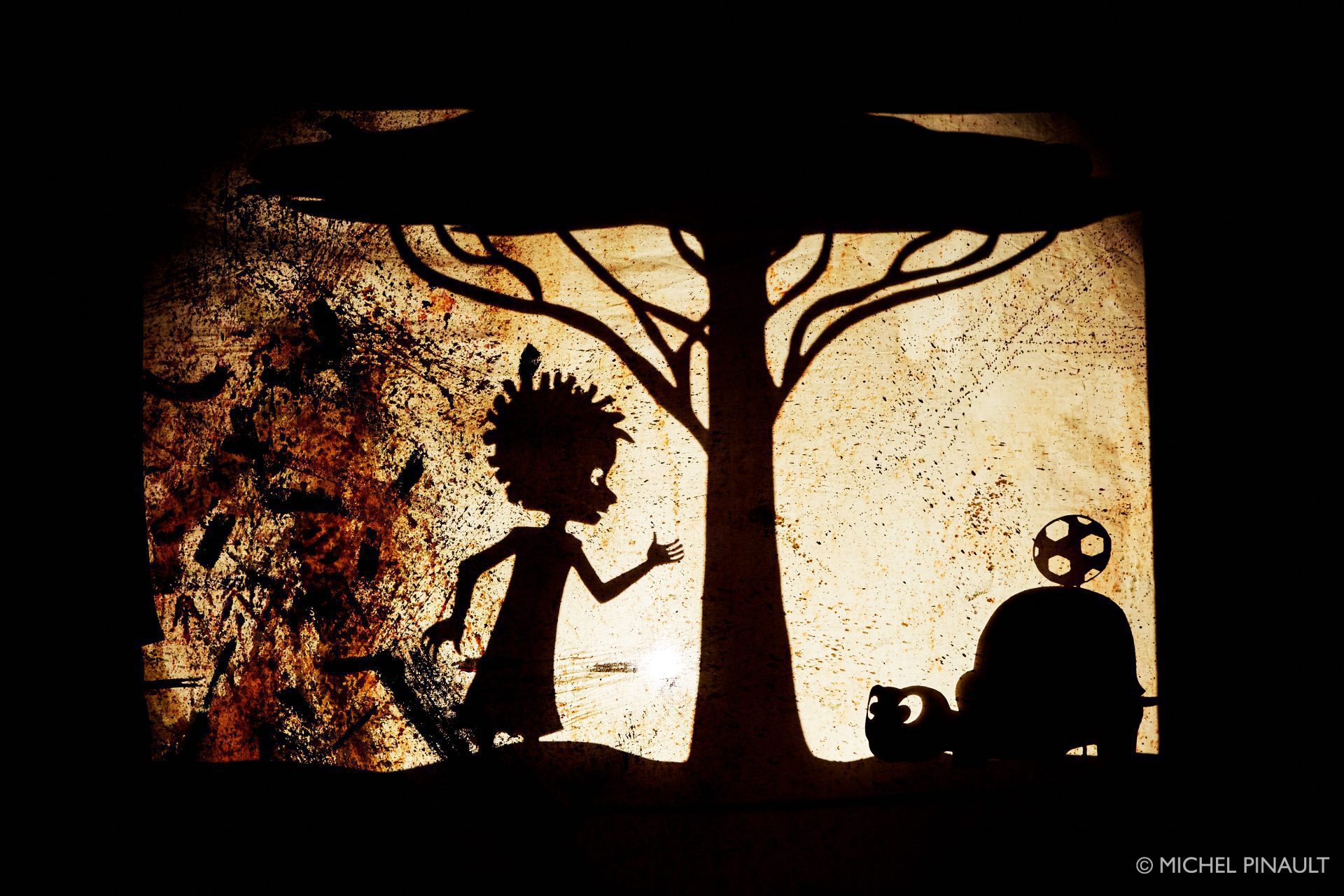 Inspirée d’un conte populaire africain, cette histoire raconte les difficultés d’un petit village africain prisonnier d’un monstre-voleur provenant de la forêt, qui pille jour après jour l’entrepôt de nourriture de tous les villageois. Un jour, une fillette nommée « Mwana », propose au grand chef du village de se débarrasser du géant. Comment une si petite enfant peut-elle rivaliser avec un monstre que personne n’a été capable d’arrêter? Quels sont les moyens dont elle dispose pour arriver à ses fins? Aurait-elle un secret ou un pouvoir inconnu des villageois? Voilà les prémisses de ce conte théâtralisé avec ombres, objets et marionnettes permettant de revisiter la maxime de Jean de Lafontaine comme quoi…« On a souvent besoin d’un plus petit que soi »!