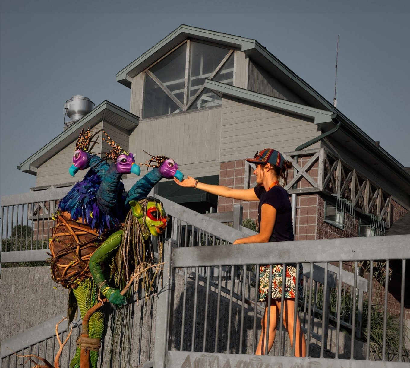 A mi-chemin entre oeuvre vivante contemplative et interactive, Ginka est une marionnette habitée. Personnification des murmures de la forêt, elle s’est matérialisée et a entrepris un long voyage pour venir à notre rencontre. Intrigante et colorée, elle nous invite à porter un regard sur notre relation à la nature. Elle s’exprime en utilisant un langage gestuel et non-verbal communicatif. Ginka se distingue par son aspect atypique et la complexité de ses mécanismes; la combinaison de mouvements par inertie et de manipulation directe la rende surprenamment vivante!