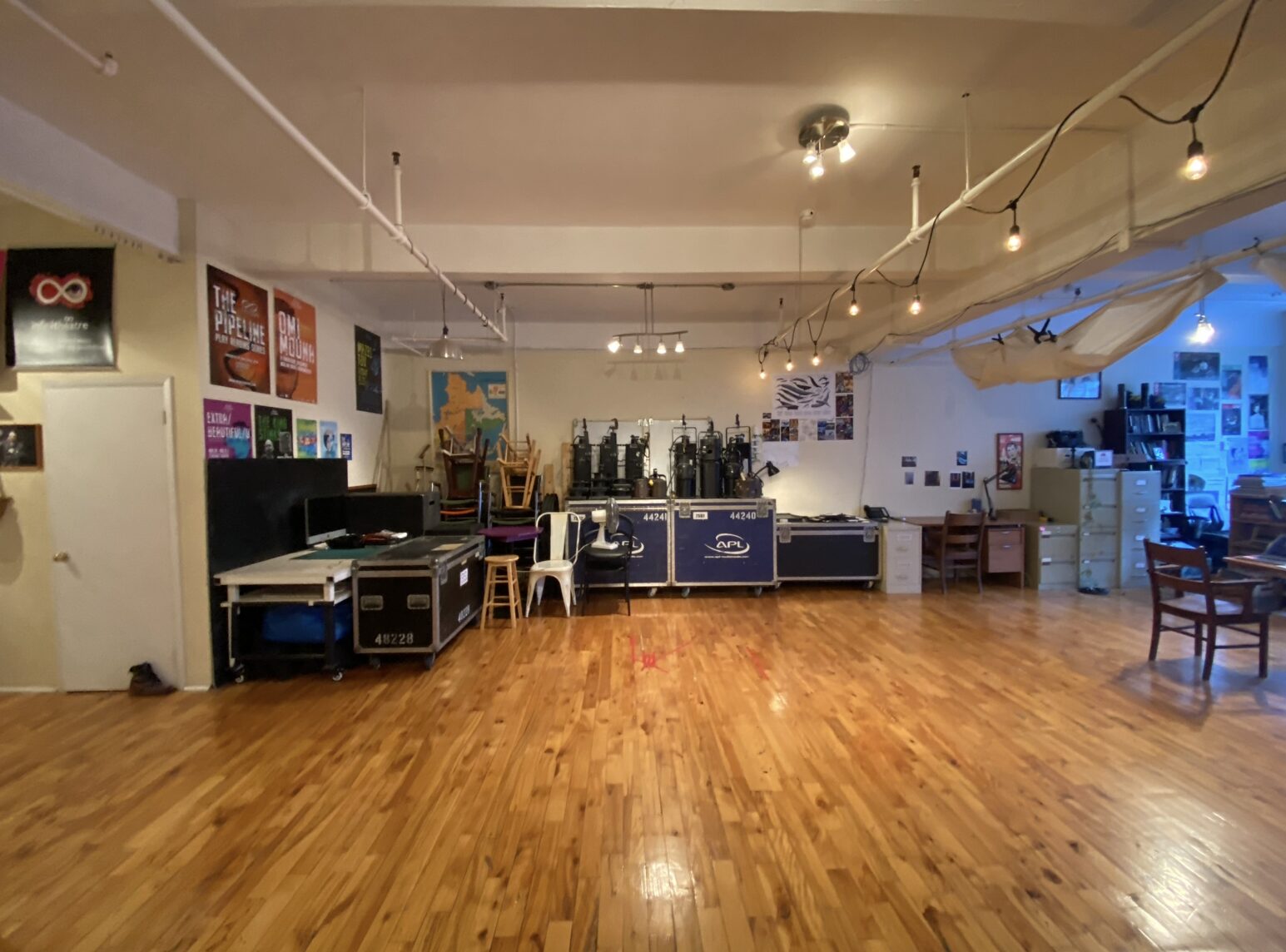 Le loft d’Infinithéâtre, qui sert à la fois de bureaux et de salle de répétition, est un espace de travail créatif lumineux et convivial situé au cœur du Mile-End, sur le boulevard Saint-Laurent. La compagnie continue d’y gérer ses activités quotidiennes et d’utiliser l’espace pour son travail créatif. Nous sommes heureux d’ouvrir cet espace à la location à court et à long terme aux artistes/créateurs lorsque les circonstances le permettent.