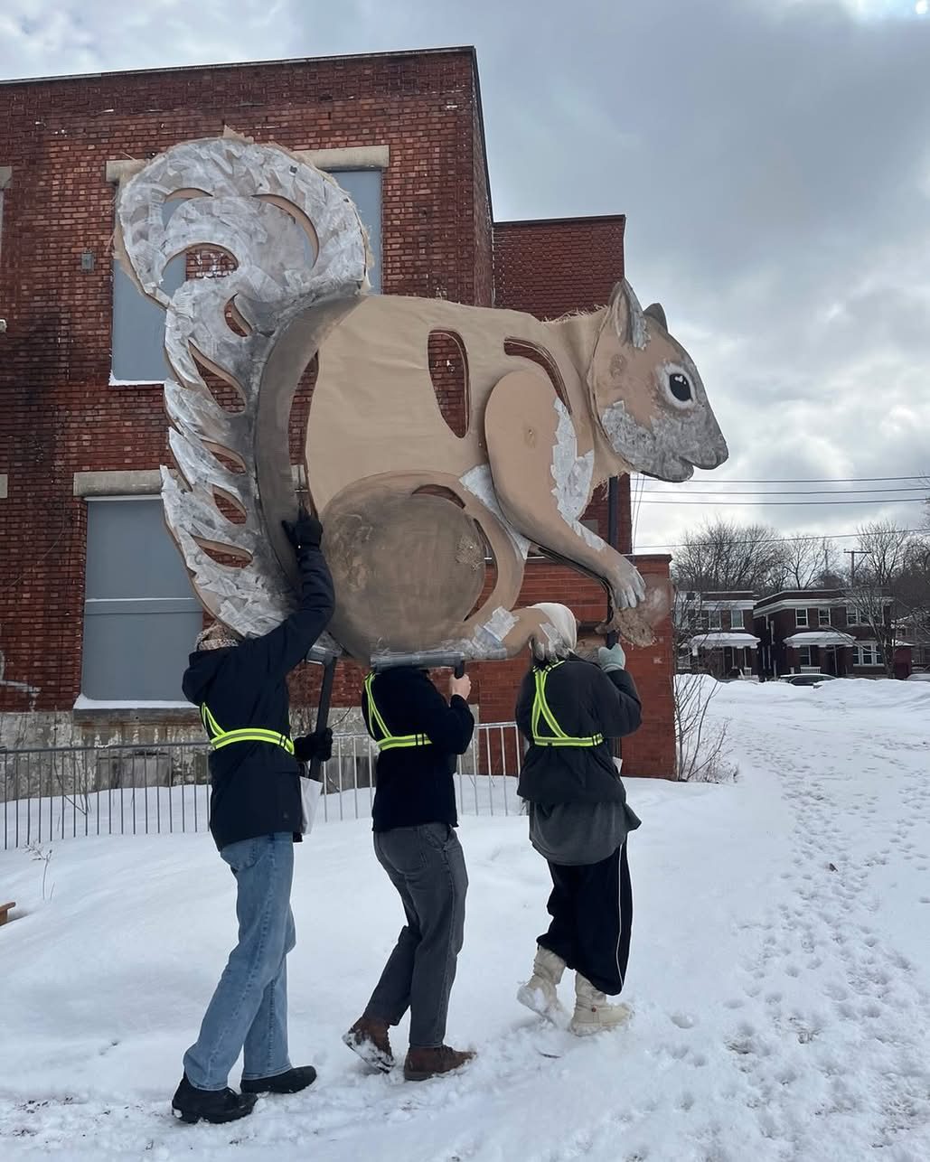 Grande marionnette crée pour la parade de la faune urbaine lors du vingtième anniversaire du festival Casteliers 2025