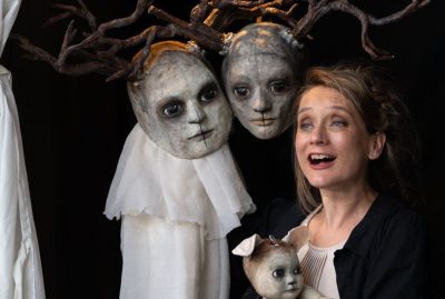 Julie Desrosiers est une marionnettiste contemporaine qui explore les relations entre humain et non-humain à travers une recherche sur l’intériorité de l’objet, son langage et sa puissance d’interaction. Elle propose des petits chantiers poreux, des univers, des natures mortes et des tableaux vivants où les matières, brutes ou domestiquées, agissent les unes sur les autres pour former et déformer des récits, suggérant leur propre dimension du vivant. Elle cherche les points de rencontre qui dévoilent des mécaniques intimes, comportementales, perceptives ou sociales. Elle utilise les systèmes que tissent les éléments entre eux pour créer des images d’incarnation, d’hybridité, d’étrangeté, de trouble et de métamorphose qui éveillent la curiosité. Ainsi, elle tente avant tout de proposer l’écoute et l’ouverture menant à l’empathie face à la matière. Cette posture et ce comportement de réciprocité dans les relations matérielles seraient, selon elle, le passage nécessaire pour assurer l’avenir de l’humain et c’est ce qui guide sa création.