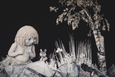 La création de masques et de marionnettes lui permet de mettre en mouvement son univers visuel par le biais des arts vivants, de la bande dessinée et du cinéma d’animation.