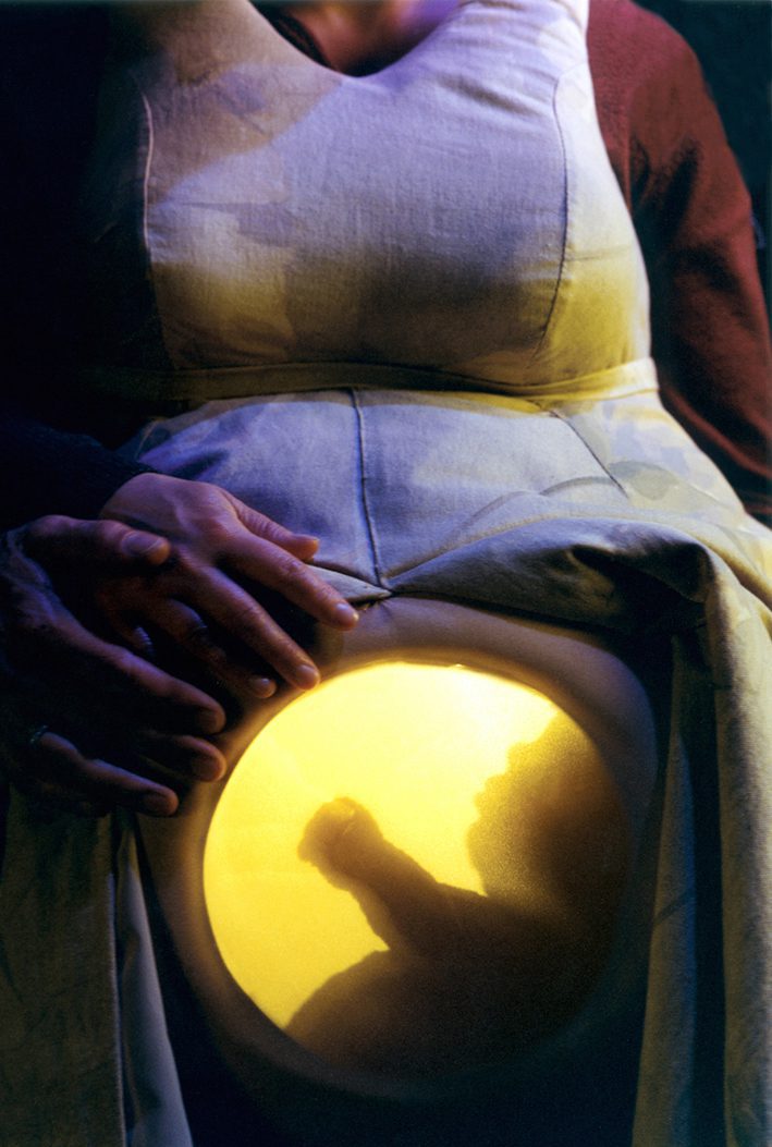 Une femme, un homme… et un bébé à venir… Entouré d’amour et d’espoir, le bébé est attendu. Tout d’abord minuscule dans l’immensité de son monde utérin, c’est le début de l’humanité qui se recrée sans cesse. Aidé de son serpent-ombilical, il côtoie les combats vitaux de son coeur-crevettes, de ses poumons-méduses et de son dragon intérieur. Enfin, le grand moment de sa naissance arrive. Poussé, comprimé, soufflé, son corps doit se » construire » afin de vivre à l’extérieur du ventre maternel. Le bébé a les sens ouverts au maximum et s’exprime d’émotions, de traits de caractère et de pulsions primaires. C’est le long voyage vers l’autonomie qui commence. Le bébé plonge alors dans son propre ventre et y découvre un microcosme de la société. Son corps, d’instinct, est autonome : il digère, il respire, il circule, il trie. Mais son dragon intérieur, reflet de ses passions et de ses rages, semble influencer, voire bouleverser, le rythme naturel. Il devra dompter celui-ci afin de retrouver l’équilibre intérieur. Déjà, il se lève, il va marcher…presque. C’est le premier pas de l’Homme sur la terre. Il est le nombril de son monde.