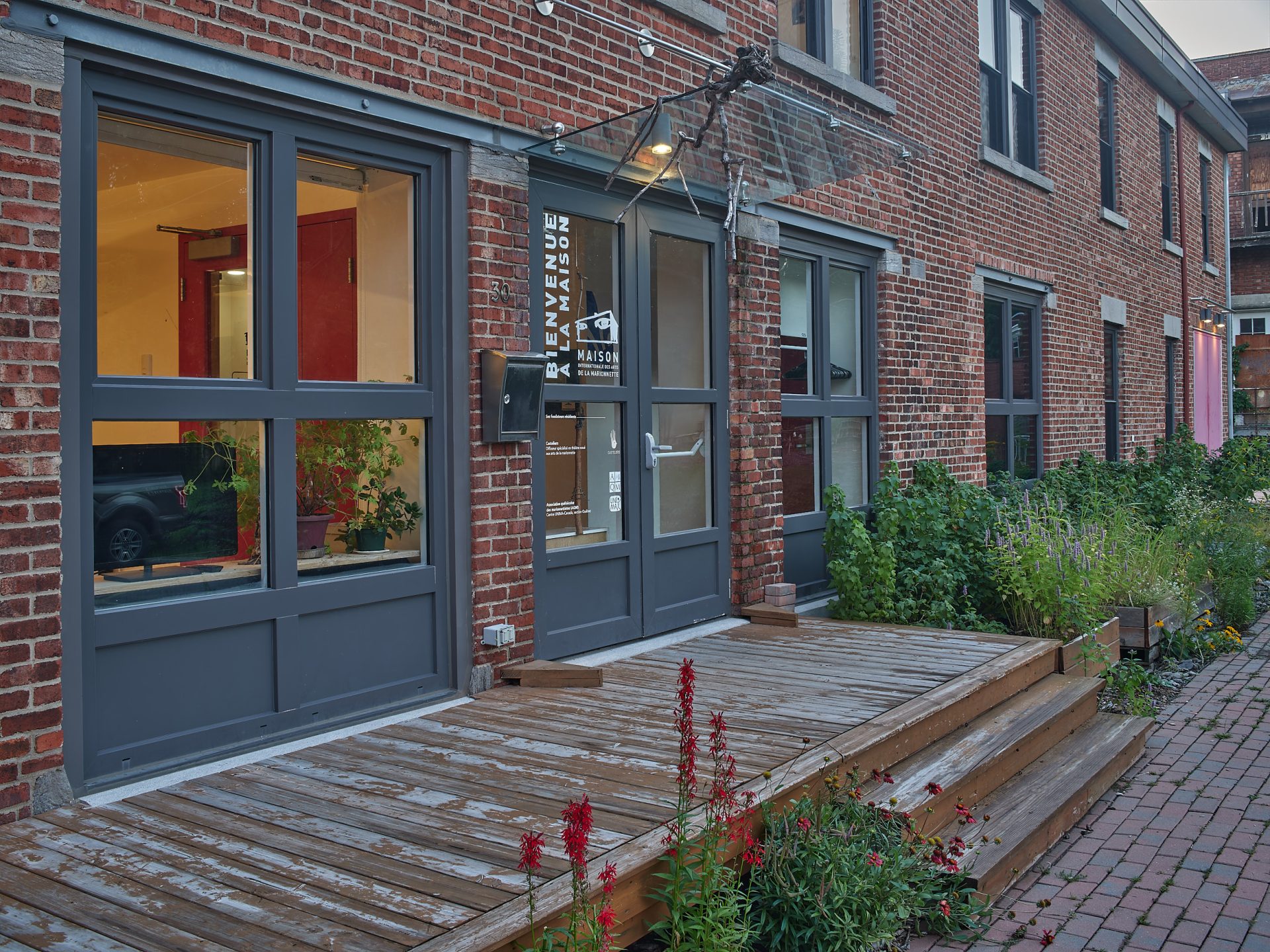 La maison, qui date de 1907, abritait les écuries des pompiers d’Outremont, ce qui explique sa forme longue et étroite. Le bâtiment, inoccupé depuis de nombreuses années, a subi une cure de rajeunissement et d’assainissement. Le toit a été refait, une cave a été creusée et recouverte d’une dalle en béton pour servir d’espace de rangement. Les architectes ont retrouvé et vitré les anciennes portes doubles de l’entrée des chevaux, qui laissent pénétrer la lumière. L’aménagement intérieur et l’équipement spécialisé ont été placés sous la responsabilité de Casteliers, en collaboration avec les artistes et artisans du milieu, très actifs au sein des comités formés pour l’occasion. Casteliers est le propriétaire emphytéote et gestionnaire de la bâtisse.