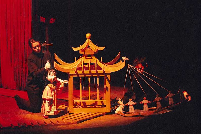 Pendant que l’empereur de Chine voit sa vie transformée par le chant du rossi-gnol, le spectateur est transporté dans la poésie et la beauté d’une Chine légendaire du temps des «Il était une fois…». L’empereur de Chine possédait les plus belles choses au monde. Mais le plus captivant de tous ces biens, connu du monde entier, était ignoré de l’empereur. Il était pourtant là, tout près, dans sa forêt. C’était le chant du rossignol. Le Chevalier de la cour fut chargé de le trouver et de l’amener au palais. Il chercha partout. Personne à la cour ne connaissait le rossignol. Personne, sauf Hziao, la petite aide de cuisine qui retournait chaque soir chez elle par la forêt. C’est donc avec son aide qu’il réussit à amener le Rossignol au palais. Le rossignol, avec toute la force de son art, arracha des larmes d’émotion à l’empereur. Mais il se retrouva en cage, avec de beaux fils de soie aux pattes, déterminant ainsi les limites de son envol. Le temps passa. L’empereur reçut en cadeau un oiseau mécanique qui vola la vedette à la cour, car il pouvait chanter à volonté. Il suffisait de le remonter. Le rossignol, à qui plus personne ne s’intéressait, profita de cette diversion pour retourner dans sa forêt. Un jour pourtant, l’oiseau mécanique se brisa. La vie de l’empereur en fut ébranlee…